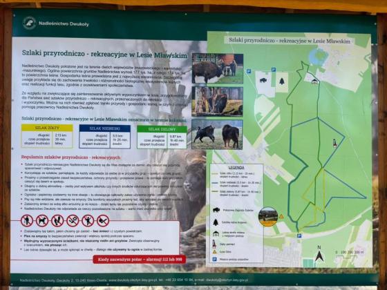 Otwarcie nowej przestrzeni wypoczynkowej to jednak nie koniec nowości w Krajewie. Od dziś turyści mogą korzystać również z nowo wytyczonego Szlaku Żubra. Ta malownicza ścieżka edukacyjno-spacerowa prowadzi leśnymi duktami bezpośrednio do zagrody żubrów. Połączenie strefy odpoczynku z nowym szlakiem to nasza propozycja na spędzenie czasu w lesie w sposób wartościowy i aktywny. Szlak Żubra pozwala na spokojny spacer w cieniu drzew, który daje możliwość obserwacji tych majestatycznych zwierząt w warunkach niemal identycznych z naturalnymi.